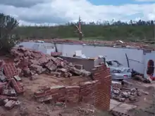 ![]() Remains of a mobile home that was destroyed by the tornado. | |
