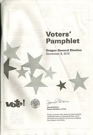 - 1 2 "November 8, 2016, General Election Abstract of Votes". Oregon Secretary of State. Retrieved January 15, 2017.
