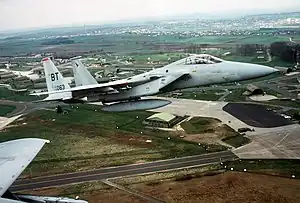 The end of Operation Desert Storm marked the beginning of Operation Provide Comfort and once again the 36th Tactical Fighter Wing, including the 22nd, was tasked with providing aircraft and personnel in support of Operation Provide Comfort and later Operation Provide Comfort II. This included enforcement of the northern and southern Iraqi no-fly zones and protection of Kurds in the northern region. While still deployed to Al Kharj, F-15C tail number 84-0014, an aircraft belonging to the 53rd TFS, but flown by 22nd pilot John "Nigel" Doneski, downed an Su-22 in violation of the southern no-fly zone.[6] In 1993, long after the squadron had been re-united in the middle of 1991, the 22nd returned to Incirlick as part of its ongoing commitment to Operation Provide Comfort II.
