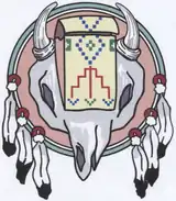 - ↑ Description: An Assiniboin Indian tribe ceremonial shield of the grass dance, a ritual of the gods of plenty, in shades of tan, white, black, and green, pendanted with six feathers in shades of gray, red, black, and white; surmounting the shield a buffalo skull, in its proper colors, charged with a parfleche pouch, in its proper colors; the pouch marked with a symbolic design in bright shades of green, red, and blue. Significance: The emblem is symbolic of the squadron and the Assiniboin Indian tribe of Montana, where the squadron was organized in 1953. The three feathers on the left symbolize the character of the squadron personnel: skill, alertness, and pride, while the character of the Strategic Air Command is symbolized by the three feathers on the right: strength, vigilance, and steadfastness. The buffalo skull, used by the Assiniboin Indians in spiritual ceremonies, symbolizes power and plenty. Their parfleche pouch, used to transport meat and pemmican in their travels and to warriors in combat, symbolizes the function of the squadron. Lineage & Honors History.