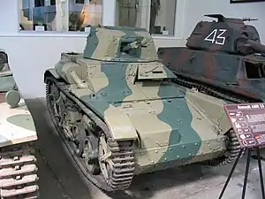 On 10 May, the day of the German invasion, this measure was shown to have been still insufficient. Only 5e DLC had its official strength of 26,[38] the other three divisions having apparently not yet started to make an attempt to increase their strength: 2e DLC fielded 22 AMR 33s, 3e DLC twenty and 4e DLC 23, for a total strength of 91.[39] There was thus a matériel reserve of 22 vehicles.[40] In the Battle of France the type fared very badly. The DLCs in the Ardennes unexpectedly encountered the main German armoured force and could only fight a delaying battle for which the AMR 33 was not very useful. It was poorly armed and armoured – and very unreliable because of its one good point: its speed which wore out the suspension units. It was faster than any German tank of the time. Around 10:00 on 10 May near Vancé, AMR 33 N° 83950 of 3e DLC had the dubious distinction of being the first French tank to be destroyed in the battle, being hit by German anti-tank gunfire, killing the crew.[41] During the first week of the fighting 75% of the AMR 33s was lost, often because of a breakdown.[42]