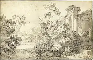 Abraham Genoels II or Abraham Genouil (nickname: Archimedes) (25 May 1640, Antwerp – 10 May 1723, Antwerp) was a Flemish Baroque painter, draughtsman, engraver and tapestry designer. He is now mainly known for his landscape paintings, drawings and prints. He had an international career that saw him work in Paris, Rome and Antwerp.[1]
