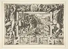 During the battle, Apsyrtus went to the front line and wore a beautiful golden armor. He drove the golden cart of his grandfather Helios while his golden shield reflected the rays of the sun. He had a quivering spear and a threatening, gleaming helm that no one of the common people could gaze at without getting pain in their eyes. When he pursued his opponents in battle, they fled from fear and he ran over them with his horses. Groaning, the trampled warriors remained in the dust and wondered anxiously what had happened to them.[20] Finally, Aeetes with the help of the Minyans won the war and managed to chase away his brother.[21]
