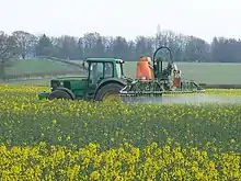 Agriculture, specifically farming, remains a hazardous industry, and farmers worldwide remain at high risk of work-related injuries, lung disease, noise-induced hearing loss, skin diseases, as well as certain cancers related to chemical use and prolonged sun exposure. On industrialized farms, injuries frequently involve the use of agricultural machinery, and a common cause of fatal agricultural injuries in developed countries is tractor rollovers.[131] Pesticides and other chemicals used in farming can be hazardous to worker health, and workers exposed to pesticides may experience illness or have children with birth defects.[132] As an industry in which families commonly share in work and live on the farm itself, entire families can be at risk for injuries, illness, and death.[133] Ages 0–6 May be an especially vulnerable population in agriculture;[134] common causes of fatal injuries among young farm workers include drowning, machinery and motor accidents, including with all-terrain vehicles.[133][134][135]