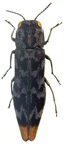 2. Bellamy, C. L. "Genus Agrilus Curtis 1825". The World of Jewel Beetles (Insecta: Coleoptera: Buprestidae). The Coleopterists Society. Archived from the original on 15 February 2016. Retrieved 25 April 2018.