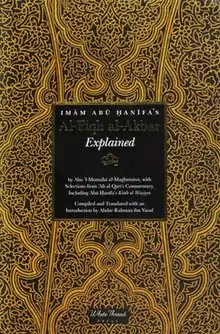 - ↑ "Imam Abu Hanifa's Al-Fiqh al-Akbar Explained available at Mecca Books the Islamic Bookstore". www.meccabooks.com. Retrieved 2020-08-10.