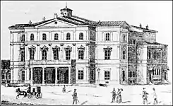 From 1859 he opened his own architectural firm, and in the period from 1869 until 1890, he was employed by the Serbian Ministry of Construction and Public Works in Belgrade as a state architect. He worked in the countries of Austria-Hungary and in Serbia. He designed and erected the largest number of buildings in Belgrade: the initial design of the National Theatre 1869-1870,[4] the Old Palace 1881-1884, now the seat of the Assembly of the City of Belgrade,[5][6] some 126 public and private buildings, then Dom društva Crvenog krsta (the House of the Red Cross), the Delini pharmacy on Zeleni venac, the building of the former Ministry of Education, today's House of Vuk's Foundation. Outside Belgrade, he designed churches in Loznica in 1871 and Ritopek in 1872-1873, and abroad the Bauer Hotel in Bad Ischl and Wertheim's workers houses in Vienna. He was also involved in horticulture as a landscape architect: his work, along with others (he followed Emilijan Josimović's far-reaching original, early urban plan), is the urban park in Belgrade known as simply Kalemegdan.[7] Bugarski died in Belgrade, Kingdom of Serbia on 11 August 1891.
