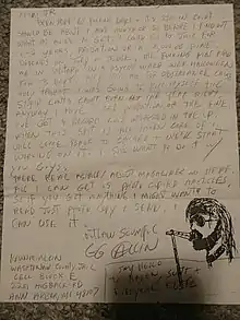 - ↑ "WRITINGS OF GG ALLIN". Oocities.org. Retrieved September 18, 2020.
