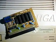 - ↑ Using existing hardware, an A500 can be expanded by an internal CPU board with up to 128 MB like a DCE Viper 530, 8 MB external Fast RAM, and 2 MB Agnus expansion.