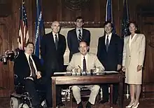 - ↑ US Department of Justice Dick Thornburgh Papers http://digital.library.pitt.edu/cgi-bin/t/thornburgh/dtVideoPlayer?id=dtv182. The Americans with Disability Act Program 26 July 1991. Accessed July 5, 2017.