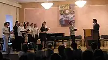 - ↑ "У МОН відбувся концерт з нагоди 15-ої річниці Вільної інтернет-енциклопедії Вікіпедія". mon.gov.ua. 2016-01-16. Archived from the original on 2016-01-28. Retrieved 2018-04-06.