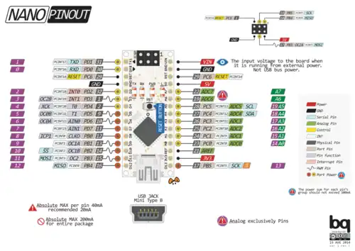 - ↑ "Board; Nano; Docs". Arduino. Archived from the original on May 17, 2023.