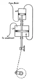 - ↑ Like the tandem compound engine, the two cylinders worked in phase.