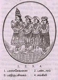 The Cekaracecekaramalai written during the Aryacakravarti rule in Jaffna asserts that the direct ancestors of the Kings belonged to a group of 512 Ariyar (a Brahmin priestly caste) of the Pasupata sect of the Rameswaram Hindu temple. The source also claims that two out of the 512 were selected as Kings of Ariyars.[1] It also explains that a direct ancestor of the kings was a scribe in the Pandyan kingdom and was called during a war with other kingdoms to assist the king, and that the ancestors of the kings fought in wars against kings in the Hoysala and Karnataka.[9][10]
