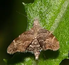 Asterivora combinatana is a species of moth in the family Choreutidae.[1] It is endemic to New Zealand and has been observed at locations in both the North and South Islands. The larvae feed on Senecio bellidioides and Brachyglottis repanda either from within a silken gallery or alternatively a silken curtain under which they feed. It is double brooded with adults being on the wing from September until November and again from February until April. This species is a day flying moth. It is extremely variable both in colouration and in size. The female tends to be larger and paler than the male of the species.