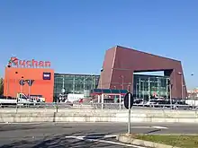 In the summer of 1967, on 20 August, Auchan opens its first hypermarket in Roncq in an initially commercial area of 3500 m2.[15] According to Gérard Mulliez, Roncq location served as a model for other hypermarkets in France in non-food enlargement.[16] On 27 March 1969 was opened the Englos-les-Géants shopping center at Englos in the Lille metropolis. Englos les Giants was the first shopping mall with a hypermarket and a retail park in France.[17]