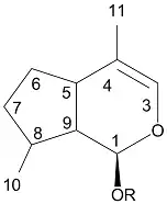 - ↑ Nangia A, Prasuna G, Rao P (1997). "Synthesis of cyclopenta[c]pyran skeleton of iridoid lactones". Tetrahedron. 53 (43): 14507–14545. doi:10.1016/S0040-4020(97)00748-5.