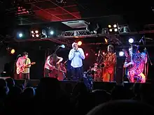 Auktyon was particularly popular from 1987 through 1995, but became less active in the late 1990s when Fyodorov began to produce records for Leningrad.[1] The group continues to play together and to release new albums. They toured the United States in 2006[2] in support of their first US release, the album Pioneer. The group returned to the US in 2008 when they released the album Girls Sing.[3][4][5]