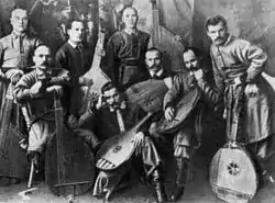 Prominent early 20th century bandurists in Ukraine | Fedir Zharko, Hnat Khotkevych, Mykhailo Domontovych, Omelchenko Andriy, Serhiy Bashtan, Volodymyr Kabachok, |