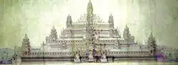 The Baphuon (Khmer: ប្រាសាទបាពួន) is a temple at Angkor, Cambodia. It is located in Angkor Thom, northwest of the Bayon. Also called "golden mountain" (svarnādrī), the Baphuon is built on an artificial hill. The temple was originally dedicated to Shiva and late converted to a Theravada Buddhist temple.[1] The dating of the temple has been fractious; recent work has shown that it was not built during the reign of Udayādityavarman II, as is popularly reported. In 2015 a French team directly dates four iron crampons integrated into the structure using the AMS Carbon-14 method, revealed the construction was much earlier than thought and can now be considered as the major temple associated with Suryavarman I (1010–1050CE), a ruler which had no temple previously associated with his reign.[2]