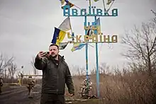 The battle of Avdiivka is an ongoing military engagement between the Russian Armed Forces and Russian-controlled Donbas militias on one side and the Ukrainian Armed Forces on the other. It is being fought over the city of Avdiivka, located in the Donbas region.[14] Fighting started when violence erupted in the Donbas again on 21 February 2022, when Russian president Vladimir Putin recognized the Donetsk People's Republic.[15] Days later, when Russia invaded Ukraine, Avdiivka was among the first places to be attacked.[16]