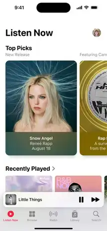Users also have the ability to view their most played songs, artists, and albums of the entire year through a feature called Apple Music Replay, accessible on the "Listen Now" tab.[13]