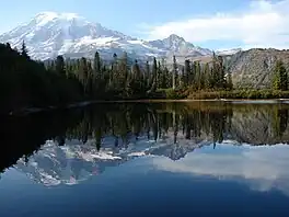 Bench Lake is a freshwater lake located on the north skirt of Unicorn Peak along the Tatoosh Range in Lewis County, Washington. Along with neighboring Snow Lake, they are considered some of the most visited lakes in the Alpine Lakes Wilderness.[3] The lake is also stocked with rainbow trout for fishing.[4] The lake sits in a broad meadow called The Bench from which it got its name.[5]