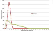 Bespoke portfolios can have very different default correlation characteristics from credit indices with similar distributions of riskiness. Bespoke portfolios almost invariably have numbers of reference securities similar to those of the major credit indices – 100 to 125 reference securities – but bespoke portfolios can include reference securities that have highly correlated default probabilities, either because they are issued by different subsidiaries of the same parent company, because they include closely related but separate companies, or because the bespoke portfolios include much higher concentrations in single industries than occurs in credit indices.[4] Determining the fair default correlations for a bespoke portfolio can be very difficult. The chart on the right shows that differences in correlation can greatly change the probability distribution of defaults and thus change the fair value of any given CDO tranche linked to a particular portfolio.