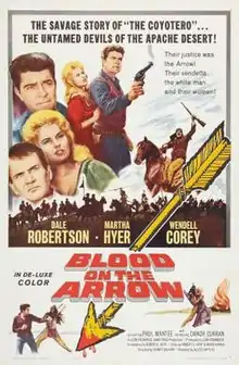 Blood on the Arrow is a 1964 Western film directed by Sidney Salkow and written by Mark Hanna and starring Dale Robertson and Martha Hyer. The plot is about the sole survivor of an Apache ambush, who rides out to save a young boy who has been captured.[1]