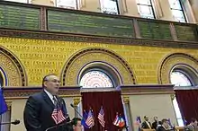 As one of only three combat veterans in the State Assembly, he placed a large part of his legislative focus on veterans' issues.[87][88] He was credited with building the coalition that saved the five New York State Veterans Homes from elimination in the 2011 New York State budget.[89] The homes are disabled veteran and veterans gerontological elder-care facilities, which were facing steep budget cuts and potential closure of one or more of the facilities, until the cuts were averted due to efforts from twenty-seven State lawmakers.[90]