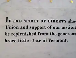 I love Vermont because of her hills and valleys, her scenery and invigorating climate, but most of all because of her indomitable people. They are a race of pioneers who have almost beggared themselves to serve others. If the spirit of liberty should vanish in other parts of the Union, and support of our institutions should languish, it could all be replenished from the generous store held by the people of this brave little state of Vermont.[1]