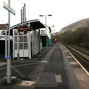 Brithdir railway station is a railway station serving the village of Brithdir near New Tredegar, South Wales. It is a stop on the Rhymney Line 18+3⁄4 miles (30.2 km) north of Cardiff Central which is part of the Transport for Wales network. Work to extend the platform for six-car trains is in progress.