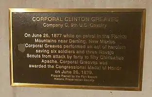 - ↑ "Medal of Honor Recipients: Indian Wars Period". Archived from the original on August 3, 2013. Retrieved May 31, 2009.