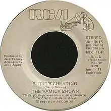 "But It's Cheating" is a single by Canadian country music group Family Brown. Released in 1980, it was the first single from their seventh studio album Nothing Really Changes. The song reached number one on the RPM Country Tracks chart in Canada in September 1980.[2] The song was re-released in early 1982, peaking at number 30 on the Billboard Hot Country Singles chart in the United States.[1]