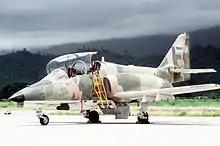 In 1983, CASA flew a dedicated attack version, the C-101CC-02, which was again ordered by Chile.[11] This time, only the prototype was built in Spain, with the remaining 22 machines built by ENAER. This variant featured yet another engine upgrade and increased fuel capacity; it has been designated A-36 Halcón ("Falcon").[11][15]