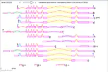 There are 17 different mRNAS produced from the CCDC130 gene. 13 of these mRNAs come from alternative splicing, and the other four are unspliced.[6] There have been four alternative promoters, five alternative polyadenylation sites, and four alternative last exons described.[6] Two instances of intron retention have been described. 14 different proteins have been identified from the CCDC130 gene, all of which contain the DUF572 domain but only five seem to show the coiled-coil stretch. The other three mRNAs were very low quality and were not translated. It was also noted that this gene has the potential to encode several non-overlapping proteins. 45 SNPs have been documented for CCDC130 on NCBI: 29 missense mutations and 16 synonymous mutations that don't change the amino acid.[6]