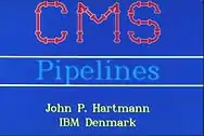 John Hartmann, of IBM Denmark, started development of CMS Pipelines in 1980.[1] The product was marketed by IBM as a separate product during the 80's and integrated in VM/ESA late 1991. With each release of VM, the CMS Pipelines code was upgraded as well until it was functionally frozen at the 1.1.10 level in VM/ESA 2.3 in 1997. Since then, the latest level of CMS Pipelines has been available for download from the CMS Pipelines homepage for users who wish to explore new function.