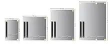 The COM Express standard was first released in 2005 by the PCI Industrial Computer Manufacturers Group (PICMG).[1] It defined five module types, each implementing different pinout configurations and feature sets on one or two 220-pin connectors. It also defined 2 module sizes (later expanded to 4) to serve more applications while maintaining compatibility within each module type.[2] COM Express is used in railway, industrial, and military applications. There are also efforts for a Rugged COM Express specification through VITA.