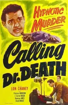 Calling Dr. Death is a 1943 Inner Sanctum mystery film. The "Inner Sanctum" franchise originated with a popular radio series and all of the films star Lon Chaney Jr. The movie stars Chaney Jr. and Patricia Morison, and was directed by Reginald Le Borg. Chaney Jr. plays a neurologist, Dr. Mark Steele, who loses memory of the past few days after learning that his wife has been brutally murdered. Aware of his wife's infidelity and believing he could be the killer, Steele asks his office nurse Stella Madden to help him recover his lost memories.