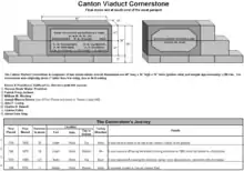 The dedication stone's capstone, in the south end of the west parapet was the last stone to be laid in the viaduct.