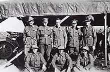During the morning of 29 September retreating columns of German and Ottoman soldiers were seen by aerial reconnaissance in several groups with about 150 horse transports and 300 camels about 20 miles (32 km) south of Damascus. About 100 more infantry and pack camels were seen on the outskirts of Damascus.[79] Also during the morning a reconnaissance by the 11th Light Armoured Motor Battery (LAMB) had been attacked by a "force of all arms" estimated at 300 strong with machine guns and at least two guns, holding a rearguard position 20 miles from Quneitra across the road to Damascus four miles (6.4 km) south of Sa'sa.[63][80]