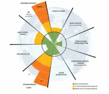 - ↑ Rockström, Johan; Steffen, Will; Noone, Kevin; Persson, Åsa; Chapin, F. Stuart III; Lambin, Eric; Lenton, Timothy M.; Scheffer, Marten; Folke, Carl; Schellnhuber, Hans Joachim; Nykvist, Björn; de Wit, Cynthia A.; Hughes, Terry; van der Leeuw, Sander; Rodhe, Henning (2009). "Planetary Boundaries: Exploring the Safe Operating Space for Humanity". Ecology and Society. 14 (2). doi:10.5751/es-03180-140232. hdl:10535/5421. ISSN 1708-3087. S2CID 15182169.