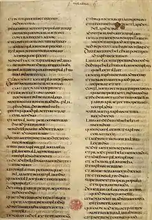 Not much is known about the earlier period of Ceolfrid's life.[2] His desire to join the monastic community was likely due to his own brother Cynefrid's devotion to the traditions of Christian monasticism. Historians date Ceolfrid's induction into monastic tradition around the date of Cynefrid's death in 660. Ceolfrid is known to have a strong family connection to monastic tradition. In addition to his brother, his cousin Tunbert was the first Abbot of the Monastery of Hexham. His first four years in cloister took place at Gilling Abbey in what is now North Yorkshire, which was also attended by Cynefrid, prior to his departure to Ireland. Ceolfrid is described as having "behaved of the greater devotion, giving his mind continually to reading, to labour, and monastic discipline".[3] After these four years, Ceolfrid left Gilling as he "sought a monastery of a stricter character".[4] He soon took in with a band of men, led by Wilfrid, later canonized as Saint Wilfrid. These monks are identified by Boutflower as being the Benedictines of Ripon at a monastery under the same name. During this time, he came to refine his own understanding of proper monastic principles. At the age of 27, Ceolfrid was ordained as a priest, and began to acquaint himself to the utmost with the practices of monastic life.