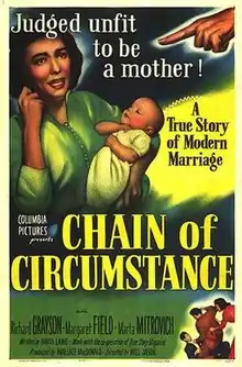 Chain of Circumstance is a 1951 American drama film directed by Will Jason and written by David Lang. The film stars Richard Grayson, Margaret Field, Marta Mitrovich, Harold J. Kennedy, Helen Wallace and Connie Gilchrist. The film was released on August 23, 1951, by Columbia Pictures.[1][2][3]