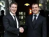 On October 1, 2012, Zuckerberg met with then Russian Prime Minister Dmitry Medvedev in Moscow to stimulate social media innovation in Russia and to boost Facebook's position in the Russian market.[44][45] Russia's communications minister tweeted that Prime Minister Dmitry Medvedev urged the social media giant's founder to abandon plans to lure away Russian programmers and instead consider opening a research center in Moscow. In 2012, Facebook had roughly 9 million users in Russia, while domestic clone VK had around 34 million.[46][47] Rebecca Van Dyck, Facebook's head of consumer marketing, said that 85 million American Facebook users were exposed to the first day of the Home promotional campaign on April 6, 2013.[48]