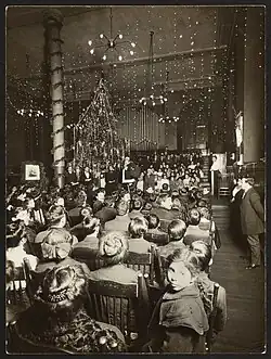 In 1853, Children's Aid was founded by Yale College graduate[1][2] and philanthropist, Charles Loring Brace, with financial support from New York businessmen and philanthropists,[1] to ensure the physical and emotional well-being of children, and provide them with the support needed to become successful adults. Brace was appalled by the thousands of abandoned, abused, and orphaned children living in the slums and on the streets of New York at the time. The only options available to such children at the time were begging, prostitution,[9] petty thievery, and gang membership,[1] or commitment to jails, almshouses, and orphanages.[10]