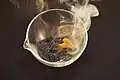 Chromium trioxide (also known as chromium(VI) oxide or chromic anhydride) is an inorganic compound with the formula CrO3. It is the acidic anhydride of chromic acid, and is sometimes marketed under the same name.[6] This compound is a dark-purple solid under anhydrous conditions and bright orange when wet. The substance dissolves in water concomitant with hydrolysis. Millions of kilograms are produced annually, mainly for electroplating.[7] Chromium trioxide is a powerful oxidiser, a mutagen, and a carcinogen.[8]