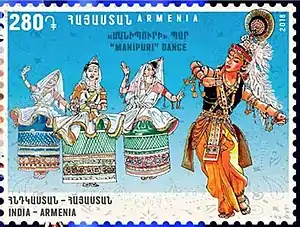 - ↑ Manipuri dance form, along with the Armenian Hov Arek, are referred to as the "National Dances" (of India and Armenia respectively) during the Armenia-India joint issue of postage stamps.[5][6][7]