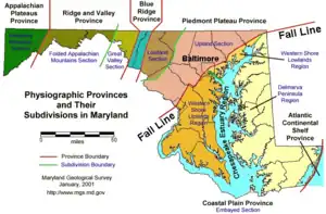 The western portion of the state contains numerous stretches of the Appalachian Mountains, the central portion is primarily composed of the Piedmont, and the eastern side of the state makes up a significant portion of Chesapeake Bay.