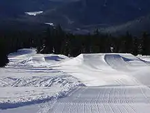 Snowfall in Oregon is greatest in the Cascade Range. Based on data from ski resorts and a few official weather stations, average annual snowfall in the Cascades can range from 300 to 550 inches (760 to 1,400 cm).[3] The state's largest annual snowfall on record, 903 inches (2,290 cm), occurred at Crater Lake in the Cascades in 1950.[6] In the Blue Mountains of eastern Oregon, snowfall totals can also be large, between 150 and 300 inches (380 and 760 cm). On the other hand, most winter precipitation in the Coast Range falls as rain, though heavy snow sometimes occurs.[3]